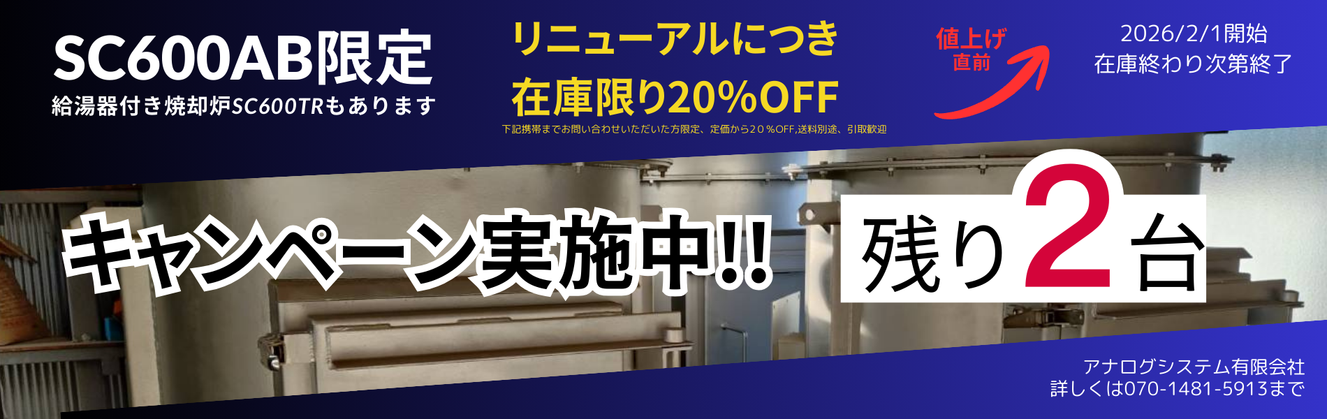 また、その他機種も材料費高騰、人件費高騰のため、現在の定価(販売価格)を維持するのが難しくなってきています。